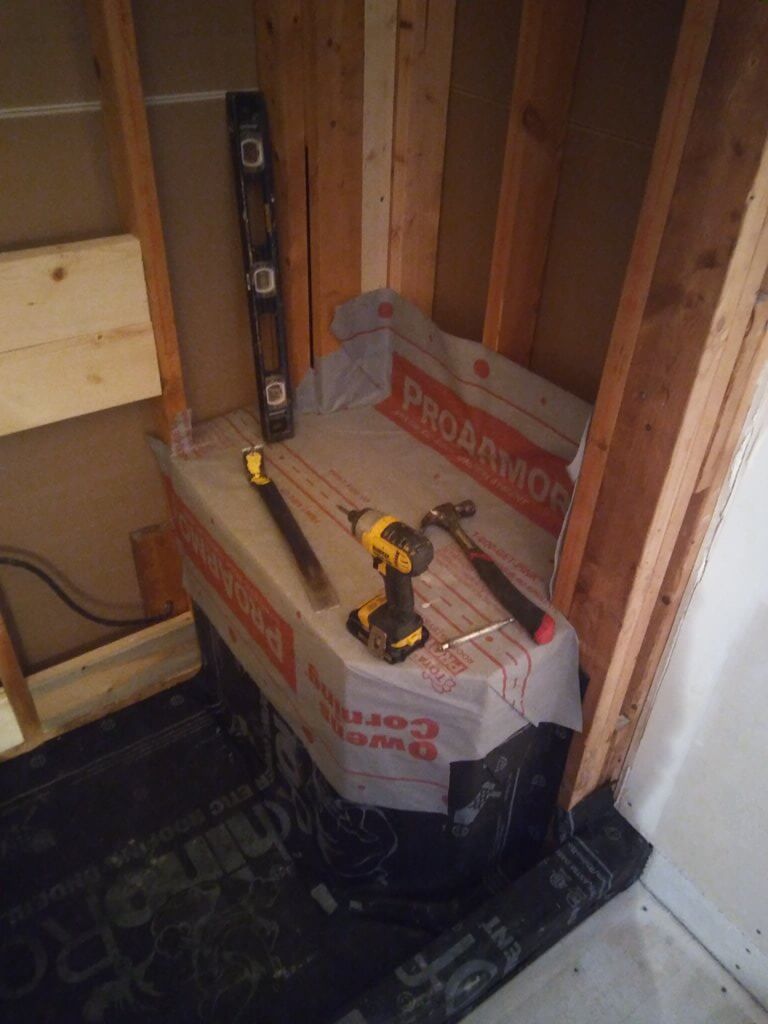 Shower liner installed and base poured