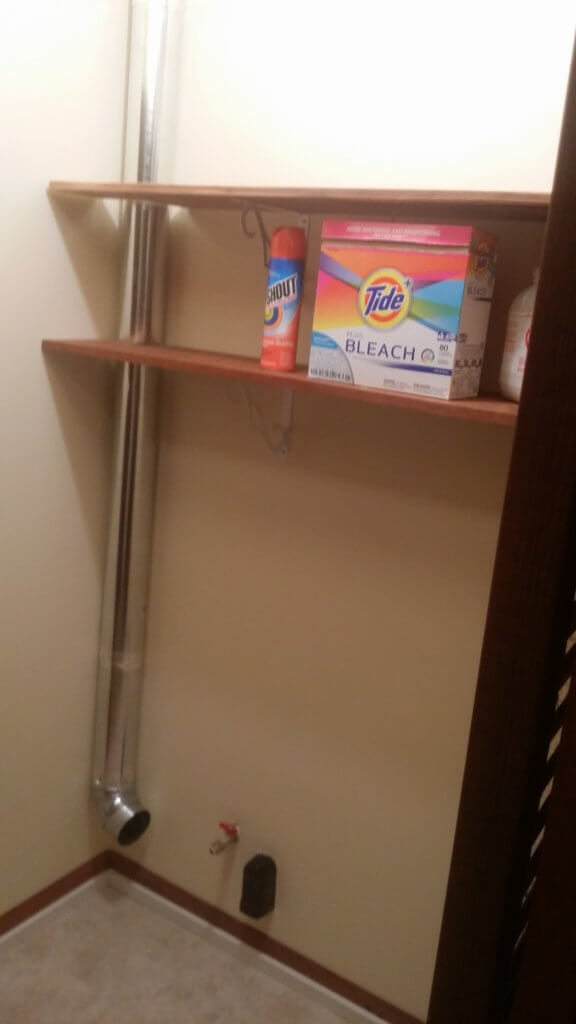 Dryer vent re-routed through the roof with proper goose-neck vent, proper gas or electrical wall options for dryer, new floor drywall patching, paint and trim.
